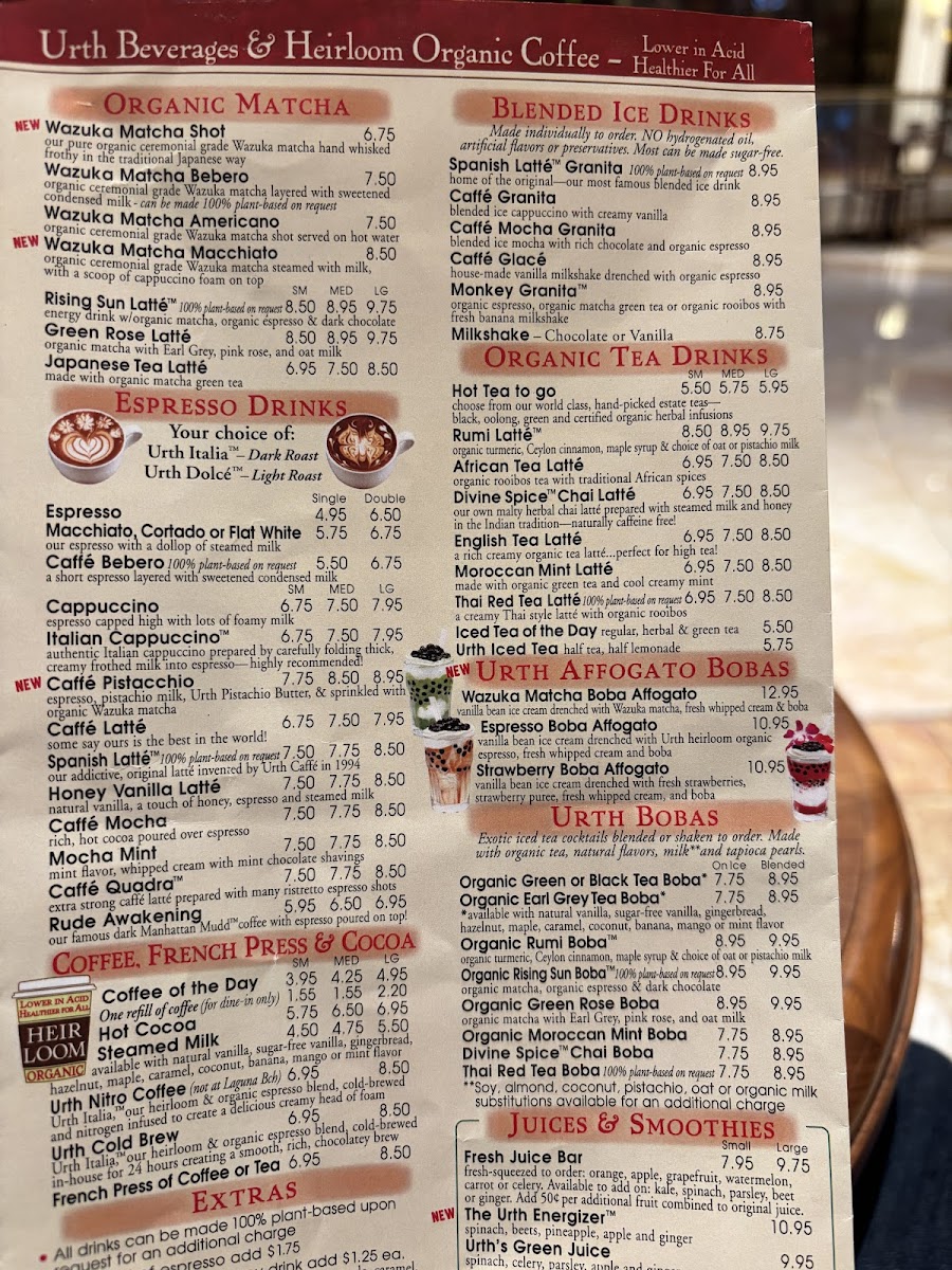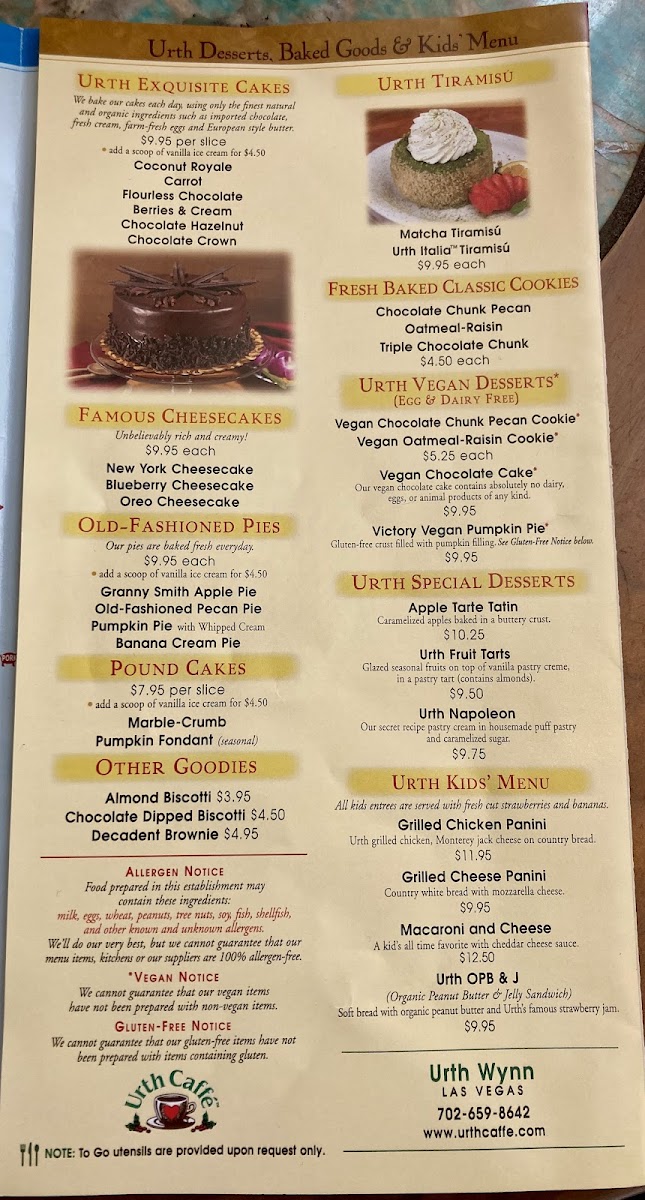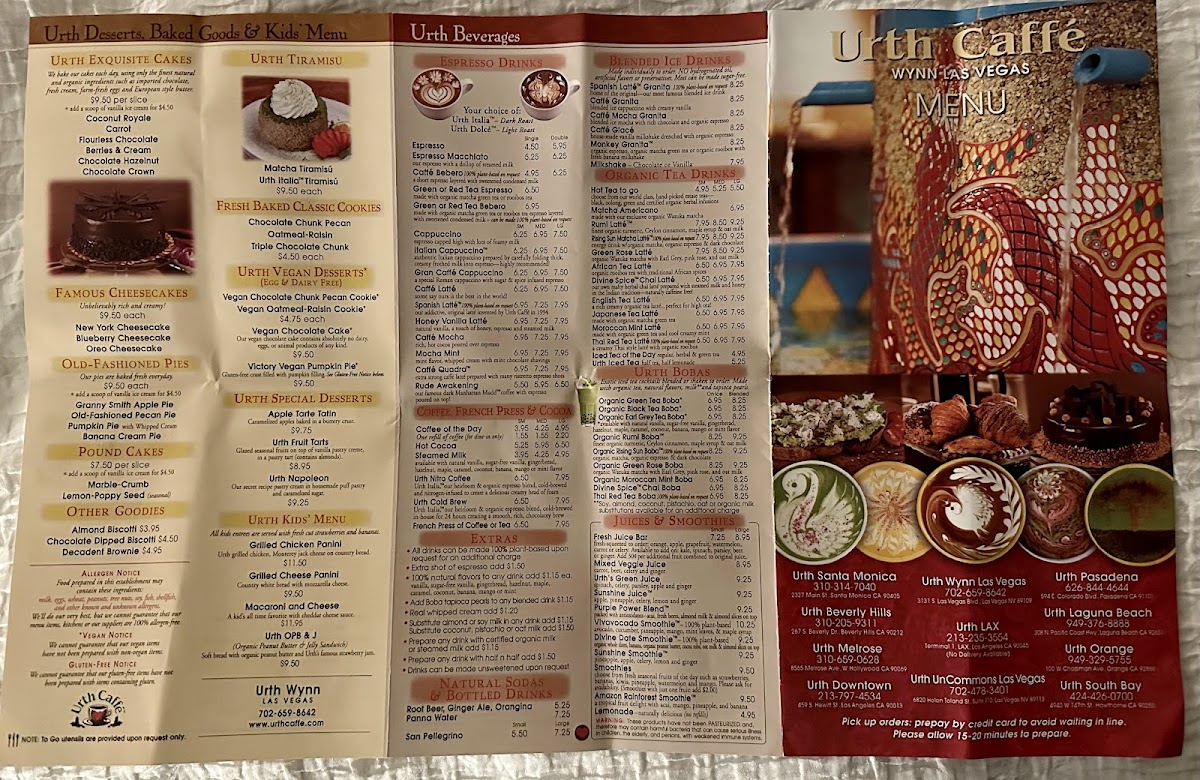 Welcome to Urth Caffe Wynn Las Vegas, a splendid destination for breakfast lovers located in the heart of Las Vegas. This eatery boasts a unique menu infused with organic ingredients, emphasizing quality and flavor. Start your day with the Urth Laguna Breakfast featuring farm-fresh eggs, savory Urth potatoes, and crispy bacon, or indulge in their flavorful Breakfast Burrito made with your choice of tortilla and delightful fillings.